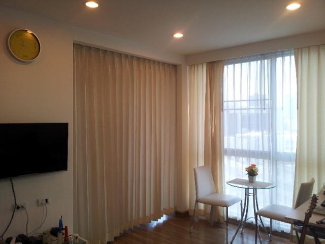 พื้นไม้ลามิเนตเปลี่ยนใหม่ ม่านทึบพร้อมม่านโปร่่ง
