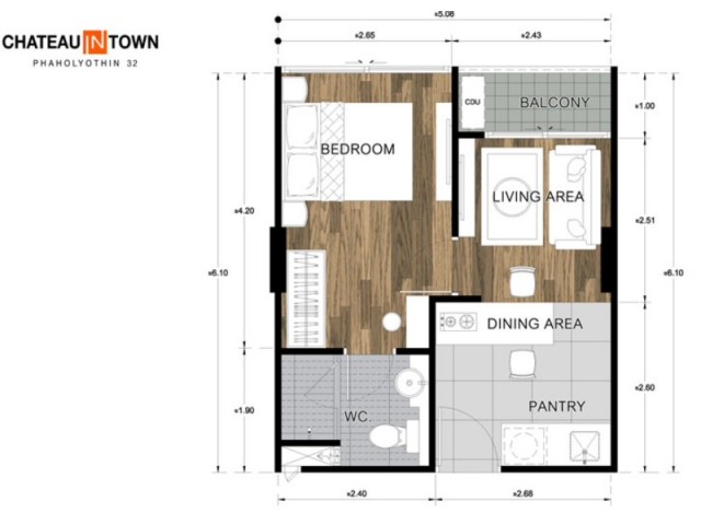 คอนโดชั้น 2 (ชั้นเดียวกับสระว่ายน้ำ)