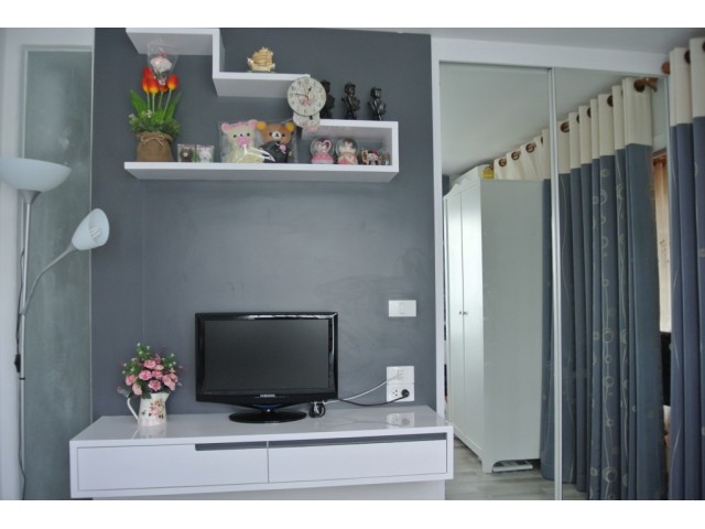 -Build-in ชั้นวางของและฉากติดตั้ง โทรทัศน์ 2 จุด พร้อมชั้นโชว์ ห้องนั่งเล่น+ห้องนอน(เดินสายT.V.เรียบร้อย)