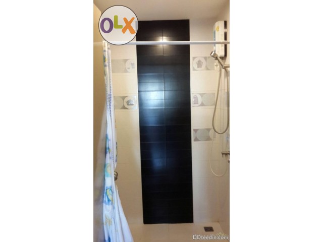 ห้องอาบน้ำเป็นตู้อาบน้ำ พร้อมเครื่องทำน้ำอุ่น ห้องรับแขกมีโซฟาสวยงาม