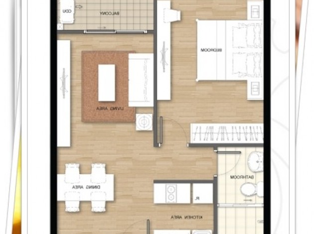 - ครัวติดตั้งอยู่กับที่พร้อมท๊อปเคาน์เตอร์ อ่างล้างจานสแตนเลส พร้อก๊อกน้ำ เตาไฟฟ้าและเครื่องดูดควัน
