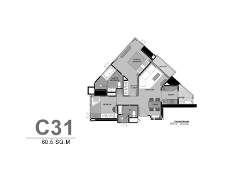 ห้องแบบ | 2 ห้องนอน, 2 ห้องน้ำ, ห้องรับแขก, ห้องครัว, มุมทานอาหาร และระเบียง
