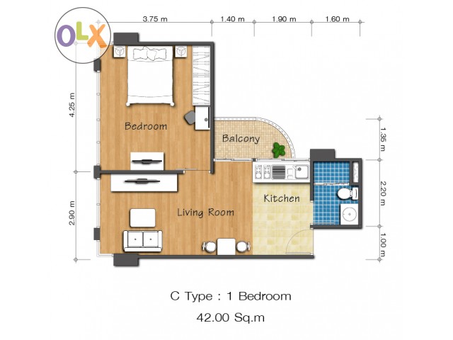 ขนาดพื้นที่ 42.0 ตารางเมตร