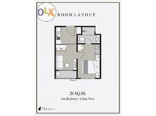 ตำแหน่ง – ขนาดห้อง : อาคาร C ชั้น 2 ห้อง C205 (ห้องมุม) ขนาด 28 ตร.ม.