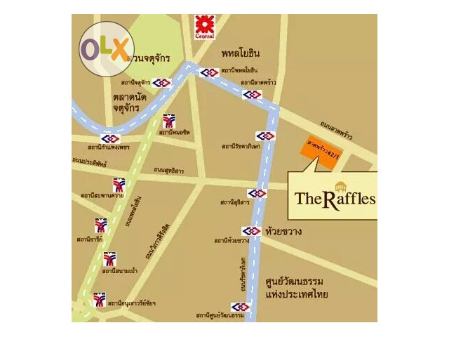 คอนโดหรู The Raffles condo อยู่ติดถนนลาดพร้าว 42/1 ไม่ต้องเข้าซอยเลย อยู่ห่าง สถานีรถไฟใต้ดิน MRT ลาดพร้าว เพียง 800 เมตร เดินทางสะดวกสบาย สิ่งอำนวยครบ เช่น เฟอร์นิเจอร์ครบชุด, เครื่องซักผ้า, ตู้เย็น, ไมโครเวฟ, ทีวี LED, เครื่องปรับอากาศ,