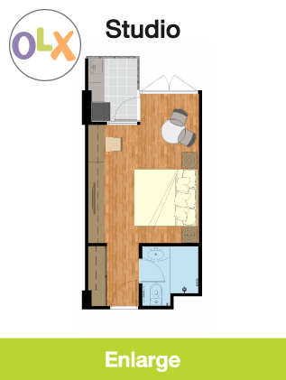 ห้องแบบ | สตูดิโอ, 1 ห้องนอน, 1 ห้องน้ำ, ห้องรับแขก, ครัวแบบเปิด, มุมทานอาหาร และระเบียง