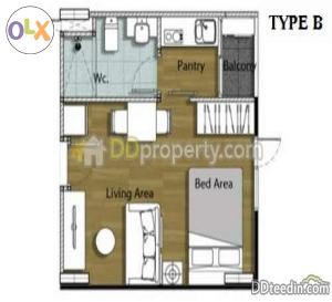 พื้นที่ห้อง ขนาด 28 ตารางเมตร 1ห้องนอน 1ห้องน้ำ