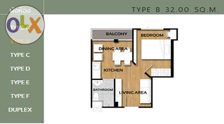 ห้อง R4B เป็นห้อง TYPE B (32 ตรม.) ชั้น 4 อาคาร Rock