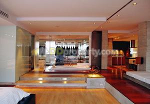 Master Bed: 1 King size Master bed located in the main area of the loft. Possible to be separated if necessary with moveable sliding partitions. The partitions are made of glass panels with garment fabric put in between the glass to hide from the other side.