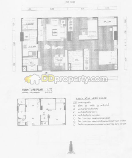 - ขนาดห้อง 60.87 ตร.ม. (2 ห้องนอน 2 ห้องน้ำ 1 ห้องนั่งเล่น 1 ครัว 1 ซักล้าง)