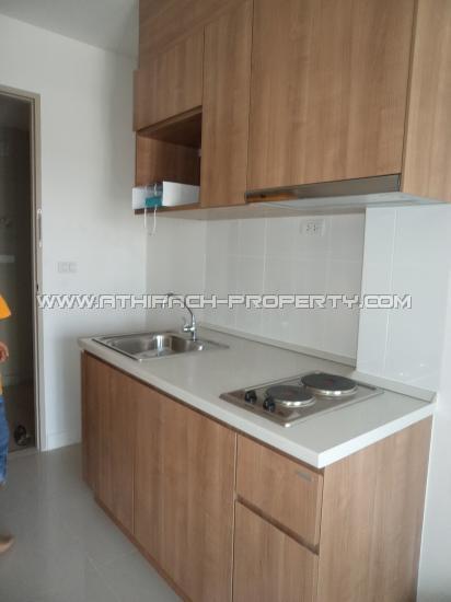 เป็นห้องใหม่ไม่เคยอยู่ ไม่มีเฟอร์นิเจอร์ ครัวบิวท์ เครื่องดูดควัน เตาไฟฟ้า อ่างอาบน้ำ ผ้าม่าน