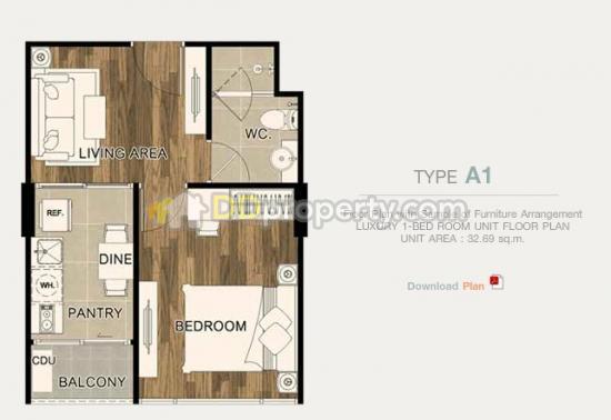 -ขนาดห้อง 32.69 ตร.ม. แบ่งห้อง 1 ห้องนอน 1 ห้องน้ำ 1 ห้องนั่งเล่น และ 1 ห้องครัว ทุกห้องมีประตู แยกกันอย่างชัดเจน ห้องหันหน้าไปทางทิศใต้ ไม่ร้อนทั้งเช้าและบ่าย