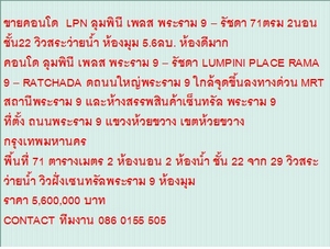 ขายคอนโด LPN ลุมพินี เพลส พระราม 9 – รัชดา 71ตรม 2นอน ชั้น22 วิวสระว่ายน้ำ ห้องมุม 5.6ลบ. ห้องดีมาก