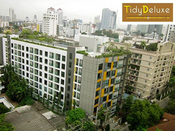 For Sell & Rent : Tidy Deluxe Sukumvit 34 Selling price : 5,017,000.-THB Room detail : 34.6sq.m. on 2nd floor, 1/Bedroom, 1Bathroom, Living room, Balcony, Kitchen, Carpark Fully furnished with Electric appliances LCD TV, Refrigerator Air-Condition, Water-Heater, Cooking hood, Electronic stove, Facilities : 1. High quality swimming pool and Gym, 2. High security with CCTV, Key card and 24 hours security guards, For more info : 081 372 8599