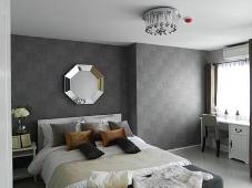 ห้องแต่งสวยมาก โคมไฟใช้แบบเปลี่ยนสีได้ 3 ระดับ ห้องติดวอลเปเปอร์