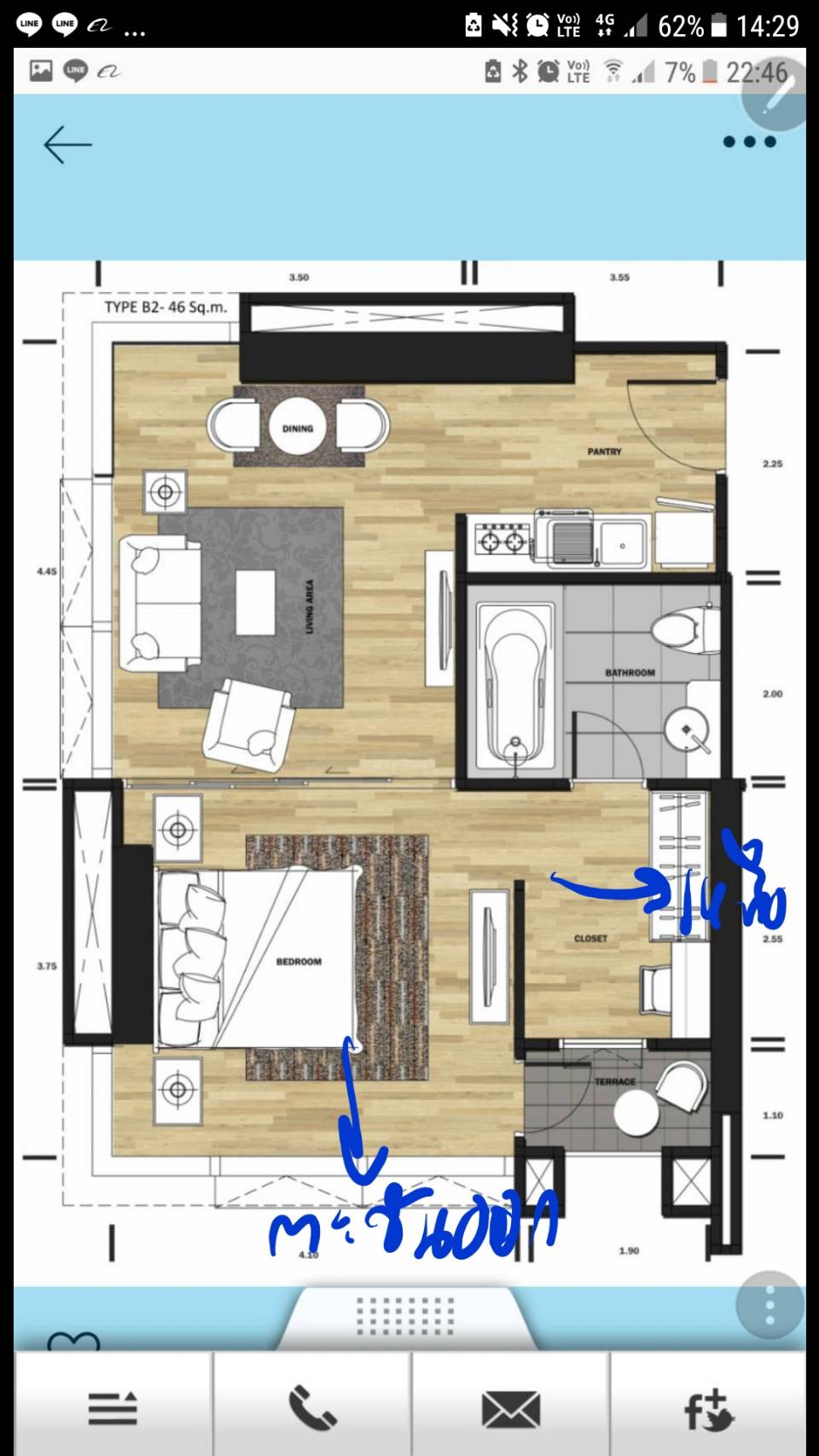 ขนาดพื้นที่ 46.0 ตารางเมตร