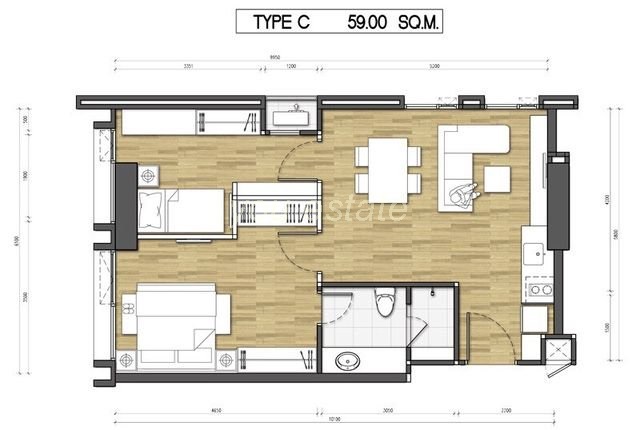 ขนาดห้อง 59.0 ตารางเมตร