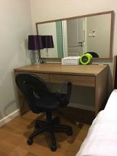 Home appliance : TV with Apple TV, Air-con, Microwave, Fridge, Hop-Hood, Washing machine+dryer, hair dryer, internet Wi-Fi, Bed 2person, Wardrobe, working table+seat, Dinning Table+seat, Sofa, dishes, pan, boiler, cup, etc.