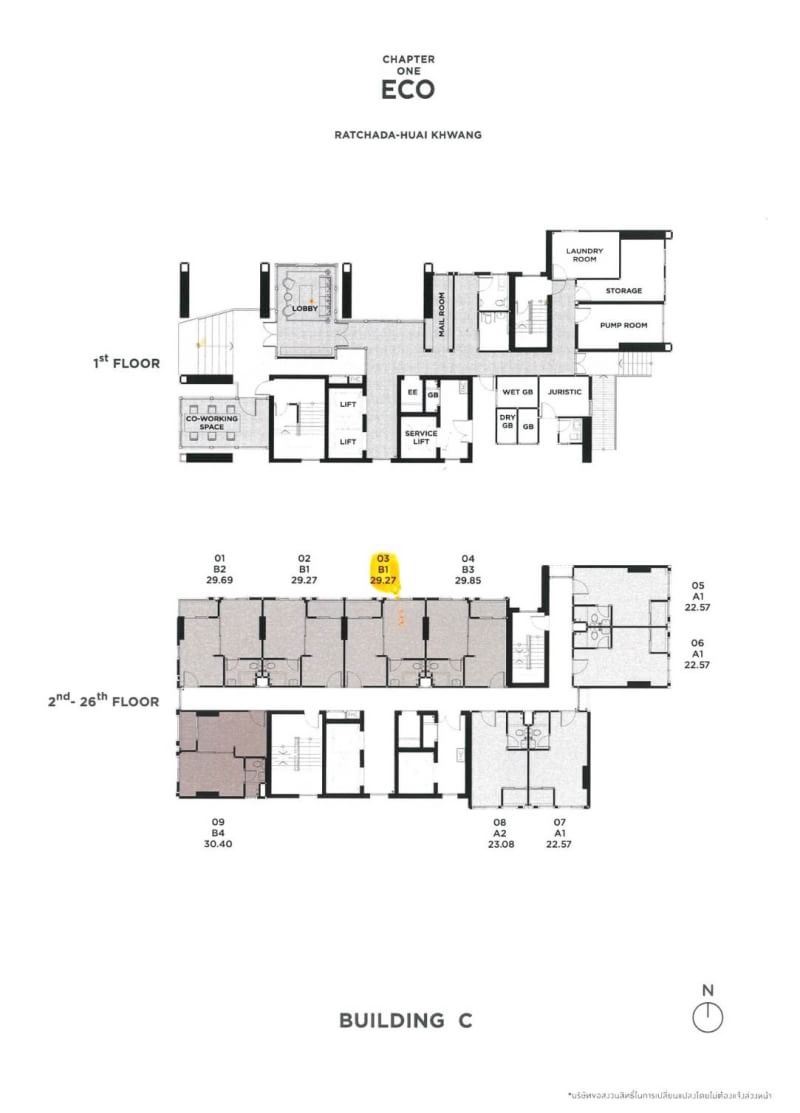 ขายดาวน์ คอนโด ใหม่ Chapter One Eco รัชดา-ห้วยขวาง ตึก G ตำแหน่ง01