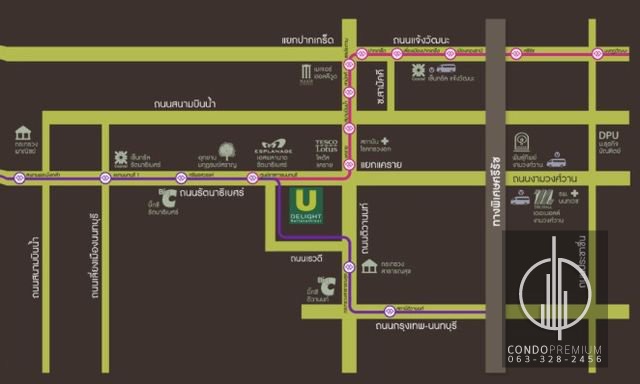 ที่ตั้งโครงการคอนโด: ถนนรัตนาธิเบศร์ ตำบลบางกระสอ อำเภอเมืองนนทบุรี จังหวัดนนทบุรี
