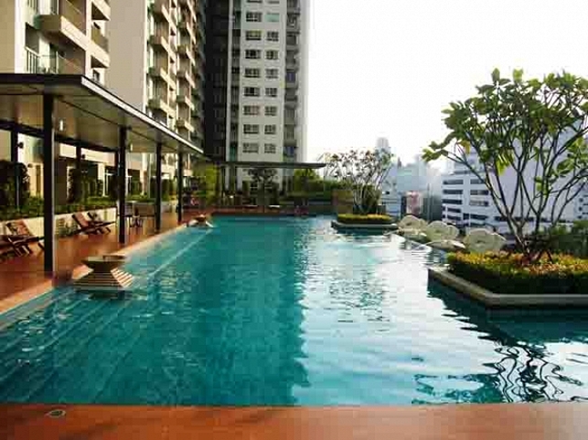 ให้เช่าคอนโด ลุมพินี เพลส พระราม 9-รัชดา ใกล้ MRT พระราม 9 1 ห้องนอน 38 ตรม วิวสระ