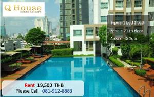 ด่วน ให้เช่่าคอนโดคิวเฮาส์สาทร ติดรถไฟฟ้ากรุงธนฯ 1 ห้องนอน เพียง 17500 บาท