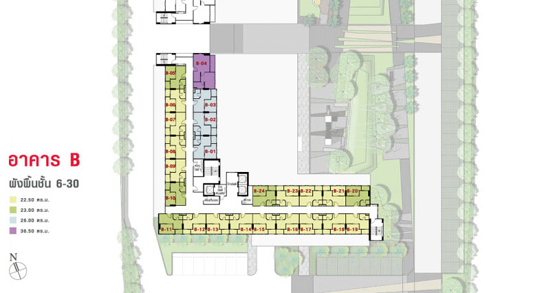 อาคาร B ชั้น 17 ห้อง 18 ขนาด 22.5 ตรม.