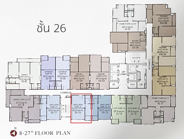 ชั้น 26 ห้อง 16 EXECUTIVE SUITE ตำแหน่งดี เงียบ ขนาด 1 ห้องนอน พื้นที่ 35 ตร.ม.