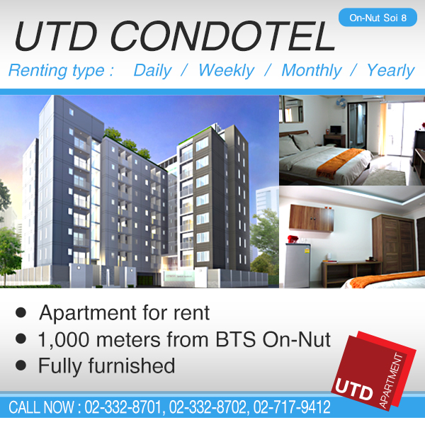 ให้เช่าคอนโดโครงการ UTD Apartment on-nut soi8- 10000 ต่อเดือน ติดต่อคุณ kan