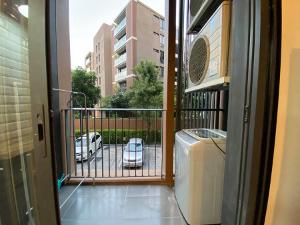 ขายและให้เช่าคอนโด Hasu Haus สุขุมวิท 77 พื้นที่ 32.5 ตรม. รวมเฟอร์นิเจอร์ครบ ด้านหน้าประตูห้องไม่ติดกับห้องอื่น เป็นวิวกระจกใหญ่มองลงไป
