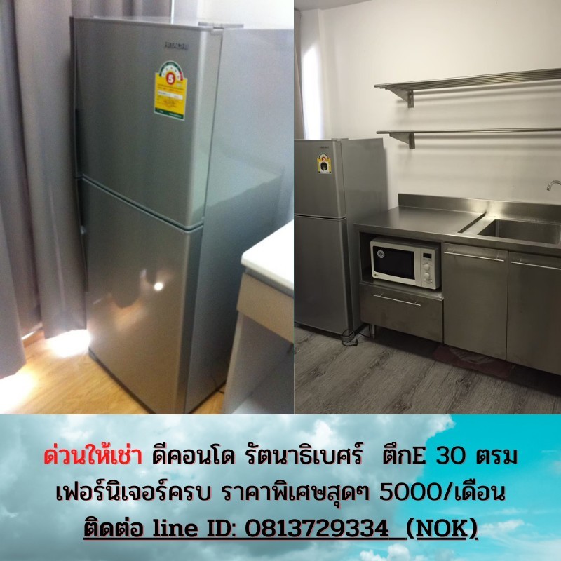 ให้เช่าคอนโดโครงการ ดีคอนโด รัตนาธิเบศร์ - 5000 ต่อเดือน ติดต่อคุณ Nok