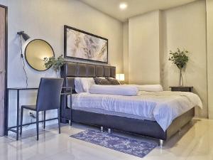 คอนโด Noble Revent ห้องนอนตกแต่งด้วยเฟอร์นิเจอร์และเครื่องใช้ไฟฟ้าครบครัน