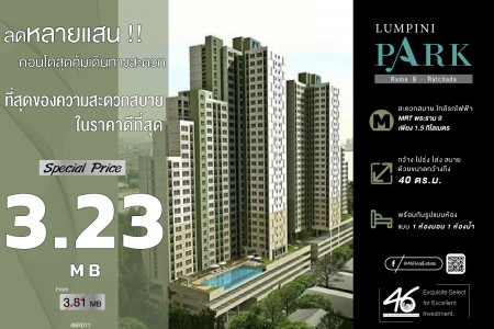 ขายถูกมากคอนโด Lumpini Park Rama 9 – Ratchada สัมผัสความสะดวกสบายในทุก ๆ วัน ในราคาไม่เกิน 3 ล้าน