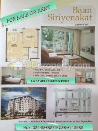 ขายคอนโดบ้านสิริเย็นอากาศ สาทรซอย 1 ชั้น 3 มี 1 ห้องนอน ขนาด54 ตรม. - คอนโด ขาย