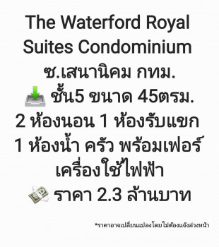 ขาย คอนโด หอ้งขนาดใหญ่ ราคาดีที่สุด The Waterford Royal Suites เสนานิคม 45 ตรม. .ช้าหมดอดได้