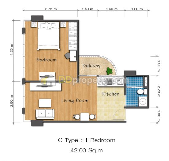 ขนาดพื้นที่ 42.0 ตารางเมตร