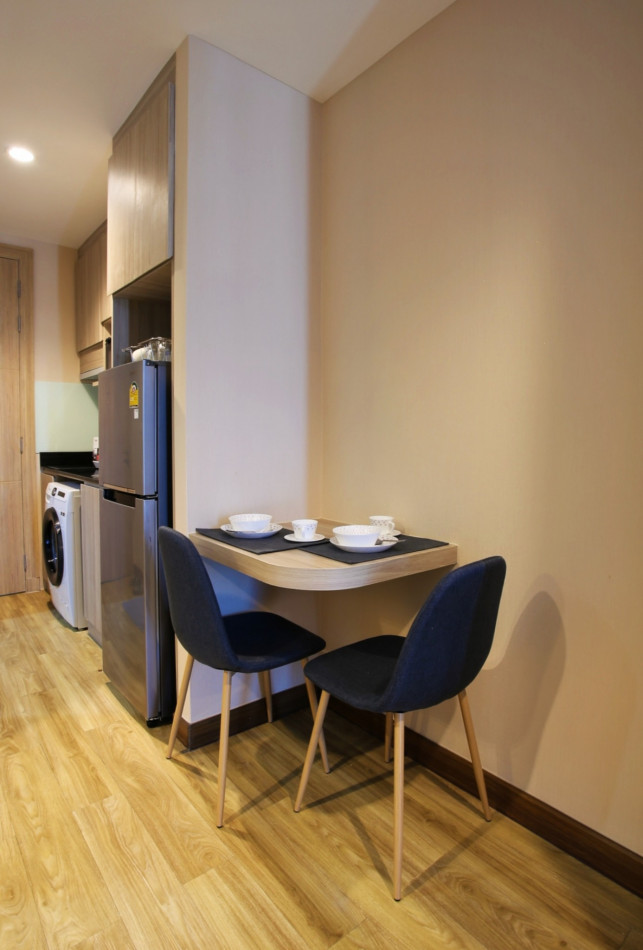 1 ห้องนอน 1 ห้องน้ำ 1 ห้องครัว มุมนั่งเล่น วิวเมือง