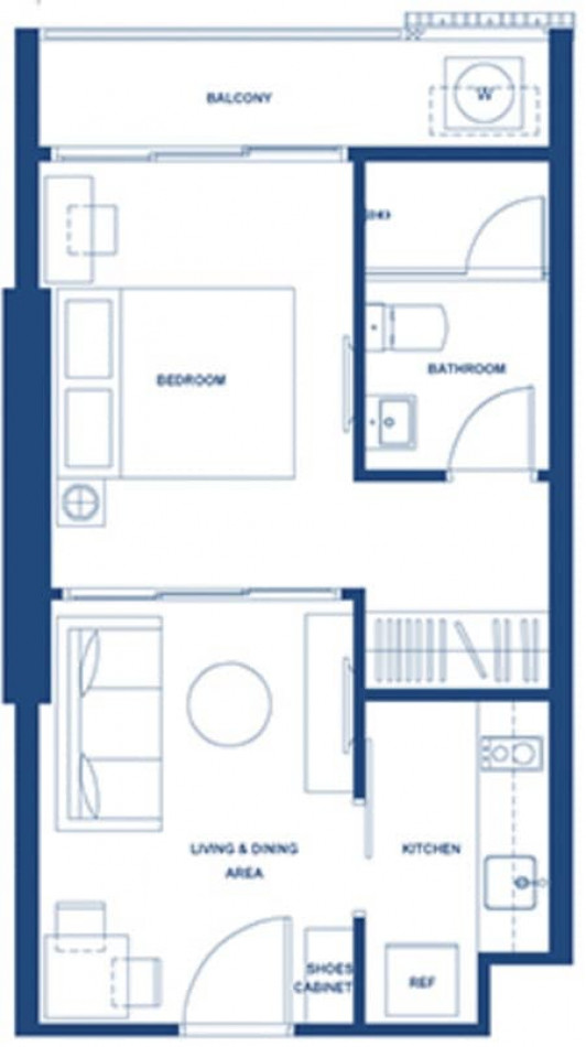 - ชนิด 1 ห้องนอน 1 ห้องน้ำ