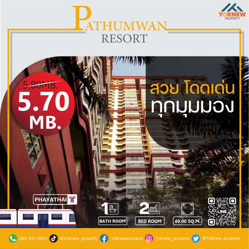 ขาย2 BED Size 60 SQ.M ห้องใหม่มากๆ คอนโด Pathumwan Resort ใกล้ BTS พญาไท