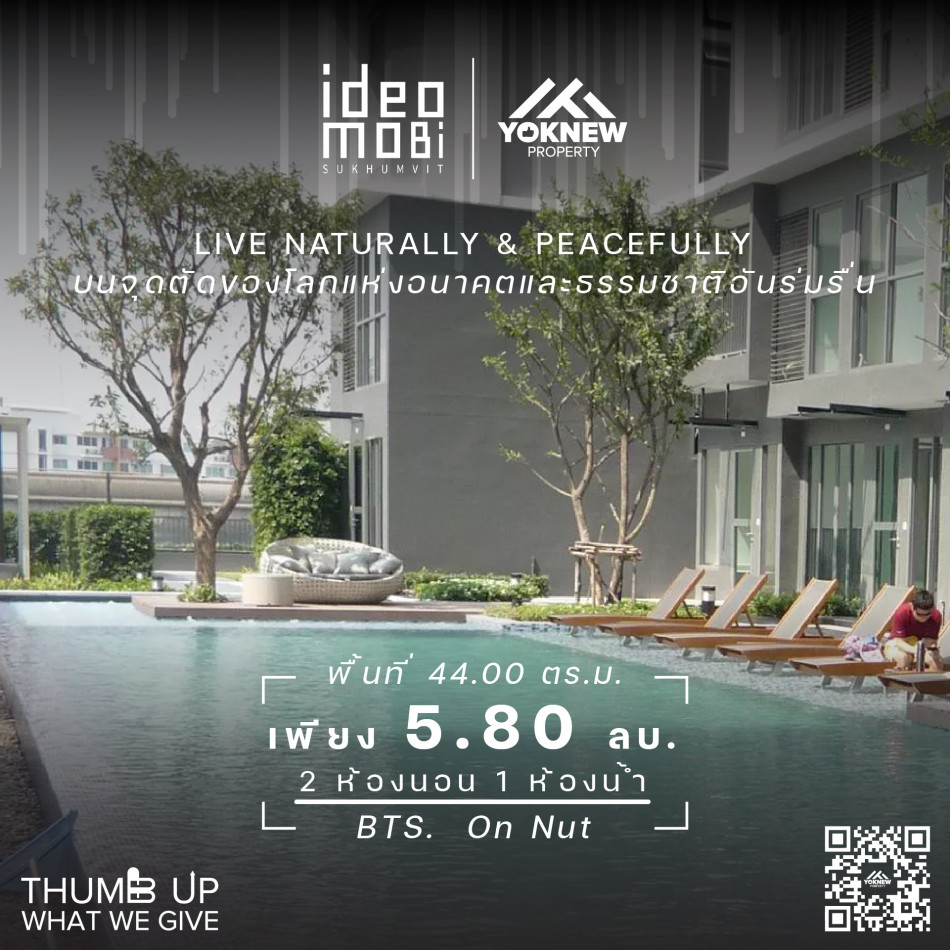 ขาย Ideo mobi sukhumvit 81 ห้องไซส์ใหญ่ 2 ห้องนอน ติด BTS อ่อนนุช