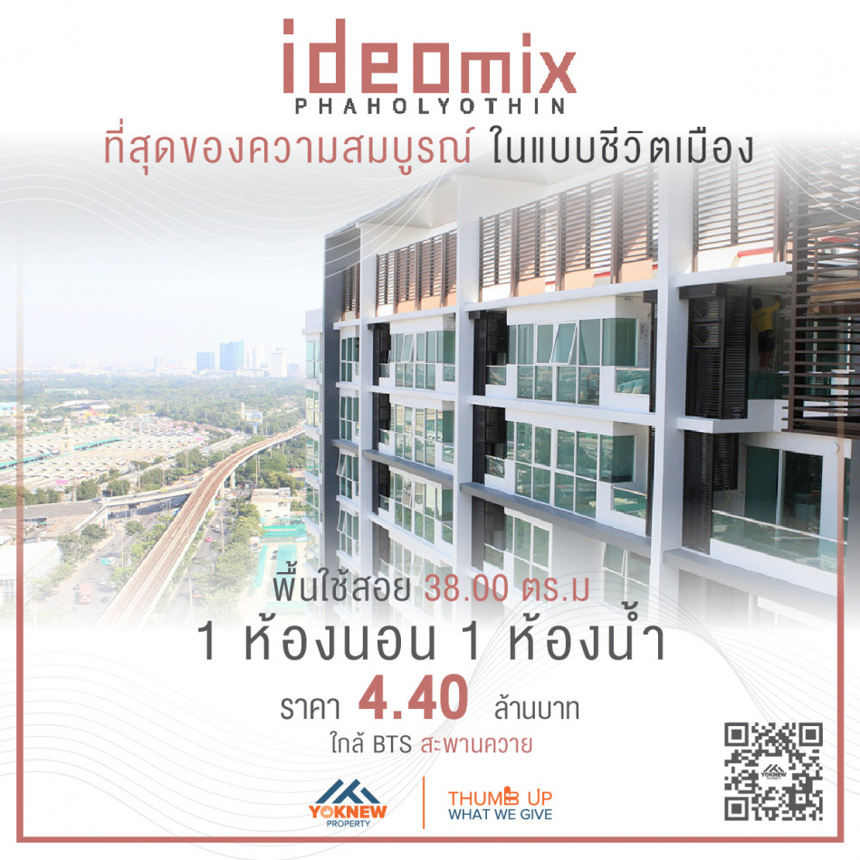 ขาย คอนโด 1 ห้องนอน IDEO MIX พหลโยธิน 31 ตรม. ติด BTS สะพานควาย ราคานี้ดีมาก