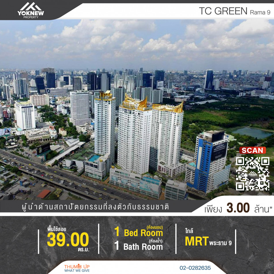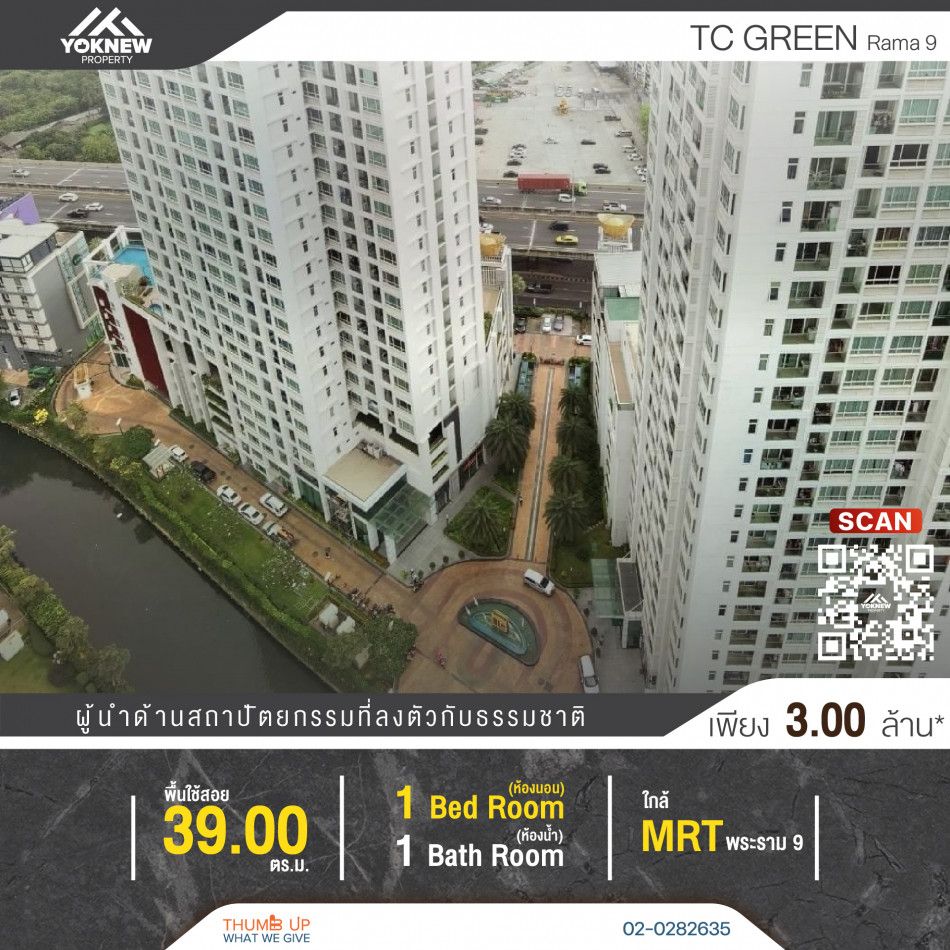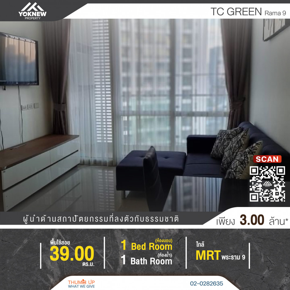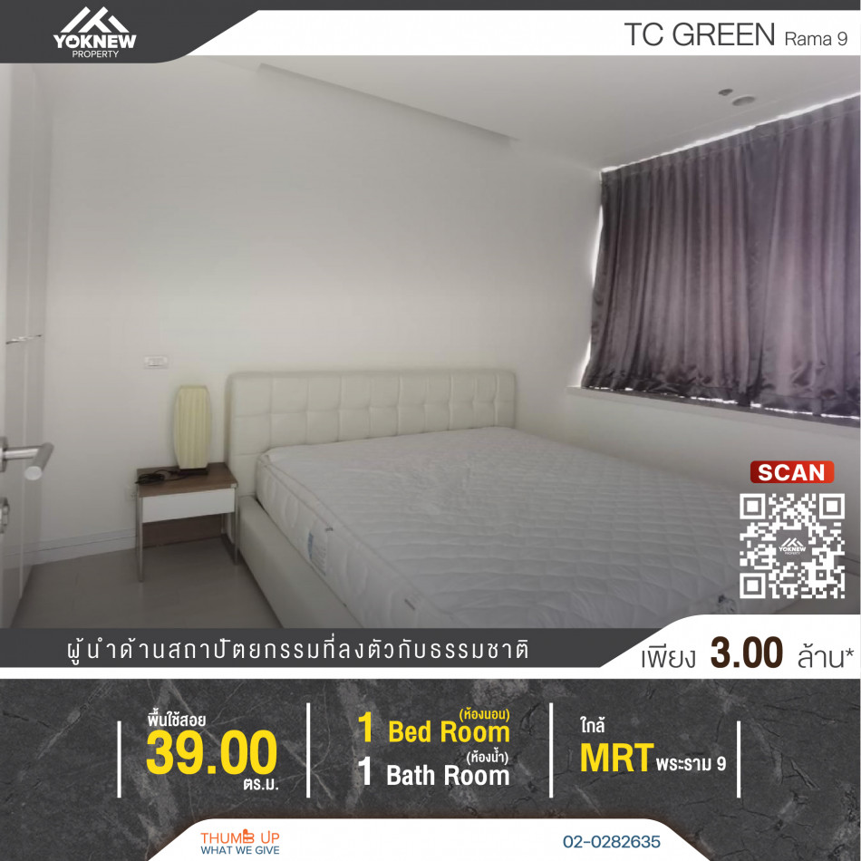 ขาย ทีซี กรีน พระราม 9 TC Green Rama 9 ขนาด 40 ตรม 1 ห้องนอน 1 ห้องน้ำ