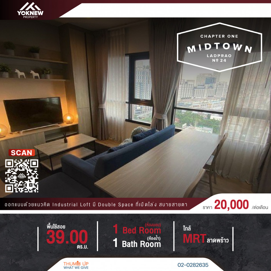 ขาย Chapter one Midtown ลาดพร้าว24 พร้อมผู้เช่า ชั้น 20 วิวฝั่งลาดพร้าว ไม่บล๊อค ID-13120
