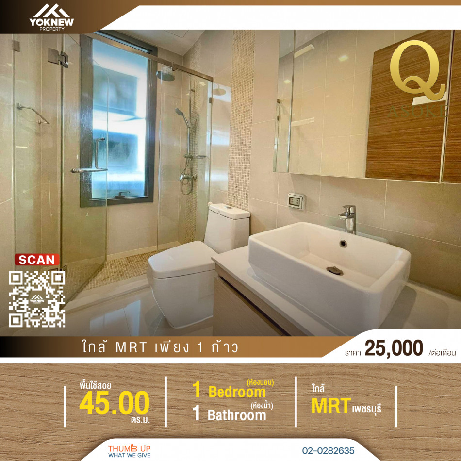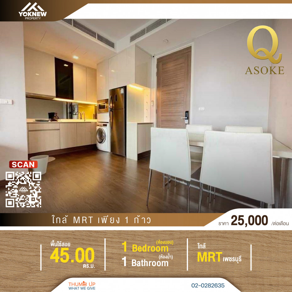 ให้เช่า คอนโด ห้อง Studio Q Asoke 31 ตรม. ติด Mrt เพชรบุรี