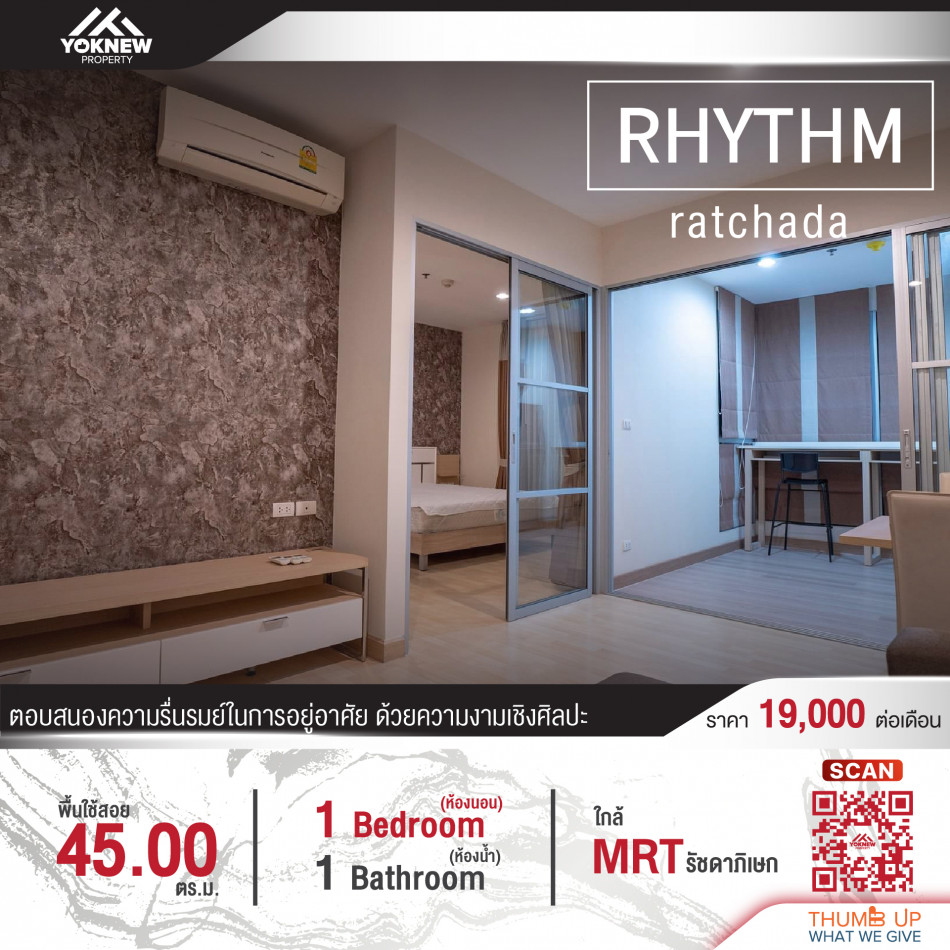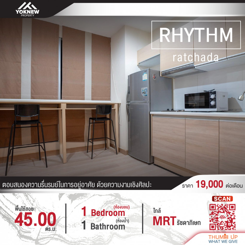 ขาย-เช่า Rhythm Ratchada ห้อง 1 ห้องนอน พื้นที่เยอะ ขนาด 45 ตร.ม.