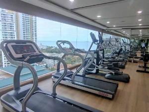 2 smart tv, free tv cable, washing machine. Microwave oven, 3 aircon, free parking garage,