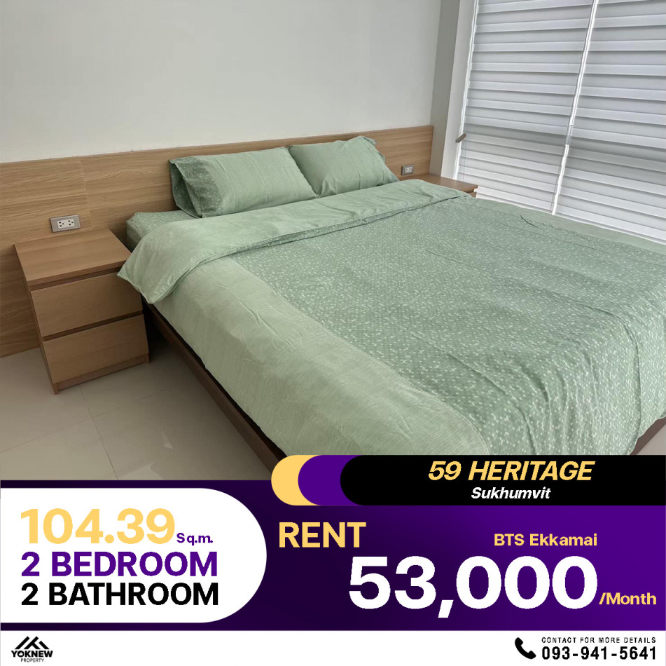 ว่างเช่าห้องใหญ่ 2 ห้องนอน 2 ห้องน้ำ คอนโด 59 Heritage Sukhumvit ทำเลดีมาก