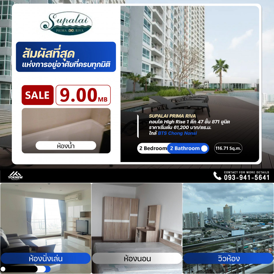 ขายคอนโด Supalai Prima Riva ห้องตกแต่งเสร็จเรียบร้อยพร้อมให้คุณเป็นเจ้าของแล้วขายราคา 9 ล้านบาท*