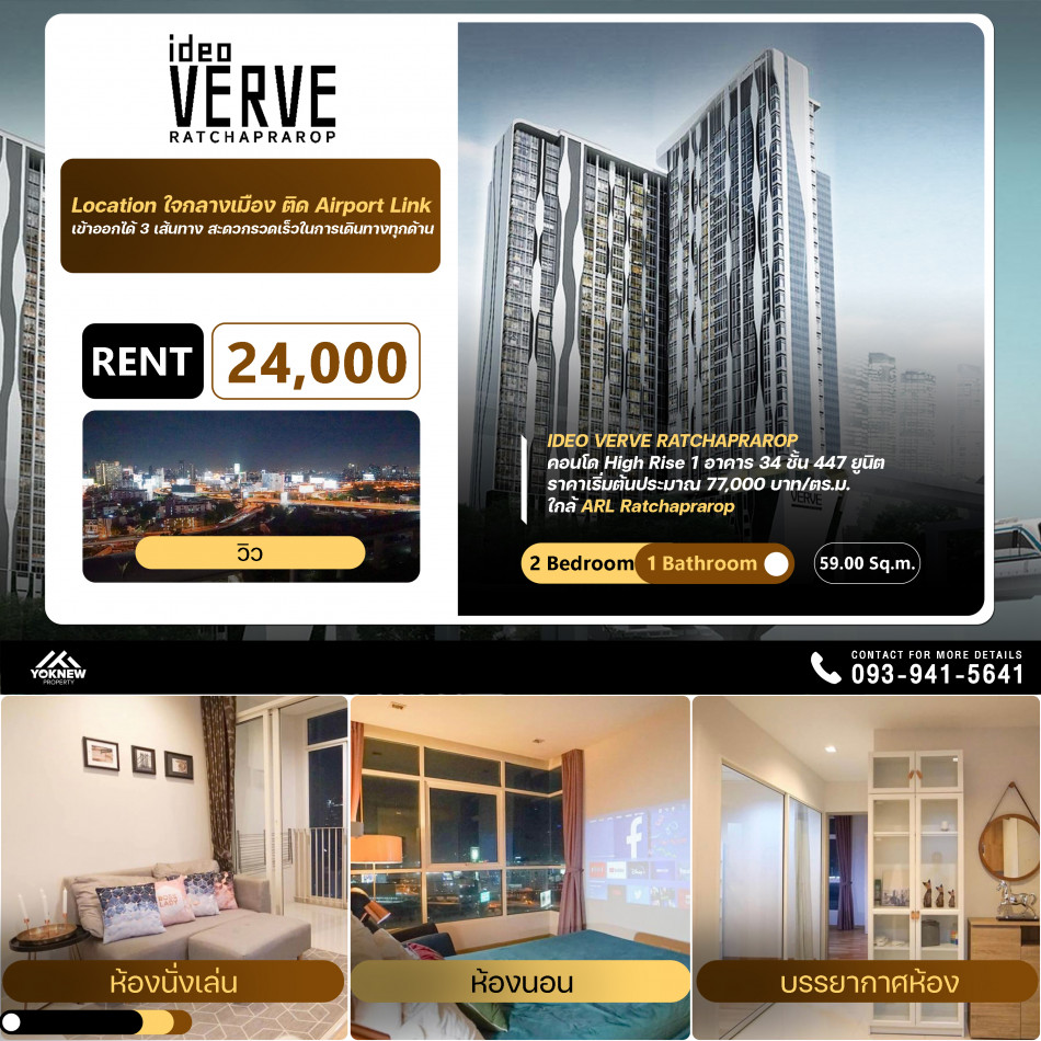IDEO Verve Ratchaprarop ห้องตกแต่งสวย ให้ครบ เช่าราคา 24,000 บาท