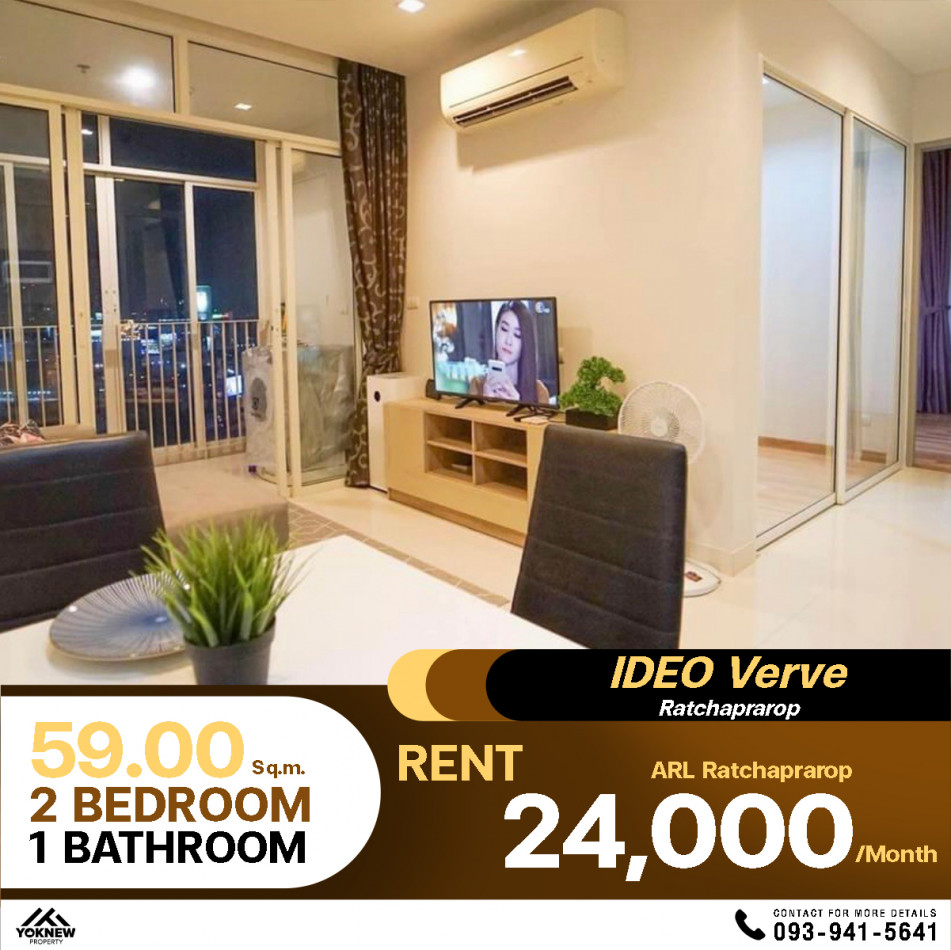 คอนโด Ideo Verve ราชปรารภ 2 ห้องนอน 1 ห้องน้ำ ให้เช่าราคาถูก